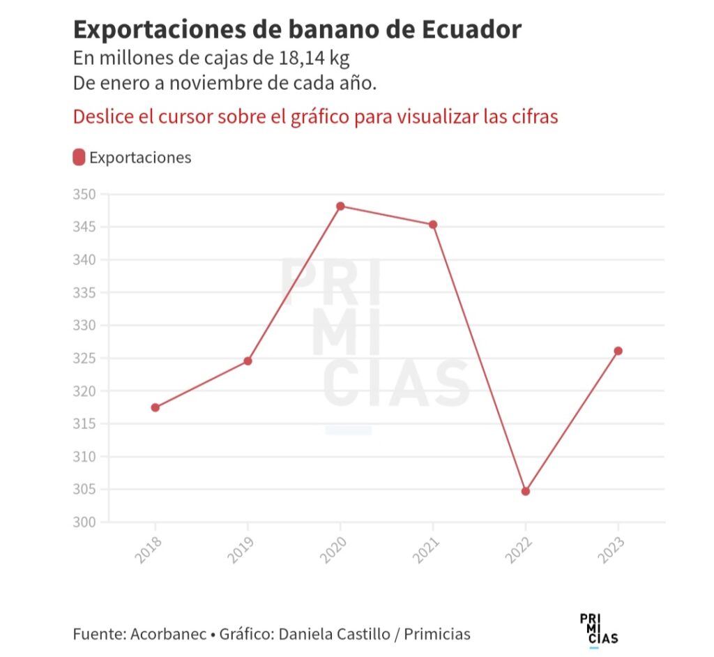 El 2023 fue positivo para el banano, con un crecimiento del 7% en volumen y 10% en valor en las exportaciones. Para 2024, se espera un aumento en las exportaciones, especialmente si se aprueba el Tratado de Libre Comercio con China, lo que abriría oportunidades significativas en ese mercado.