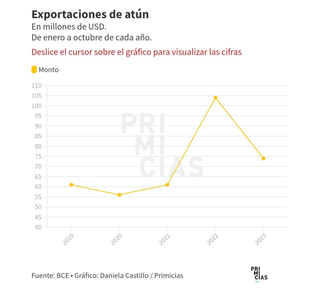 Las conservas de atún enfrentaron una disminución del 11% en volumen y 5% en valor hasta octubre de 2023. El sector está enfocado en crecer en el mercado estadounidense, con expectativas puestas en la aprobación de la Ley IDEA en el Congreso, que otorgaría beneficios arancelarios unilaterales a Ecuador.