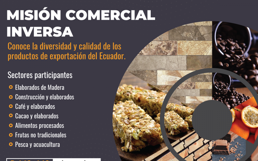 La Federación Ecuatoriana de Exportadores – FEDEXPOR, invita a las empresas nacionales a ser parte de la primera misión comercial inversa virtual del país. La cual se ha denominado “Ecuador Trade Mission”. Este evento tiene como objetivo mostrar la diversidad y calidad de la oferta exportable ecuatoriana al mundo.